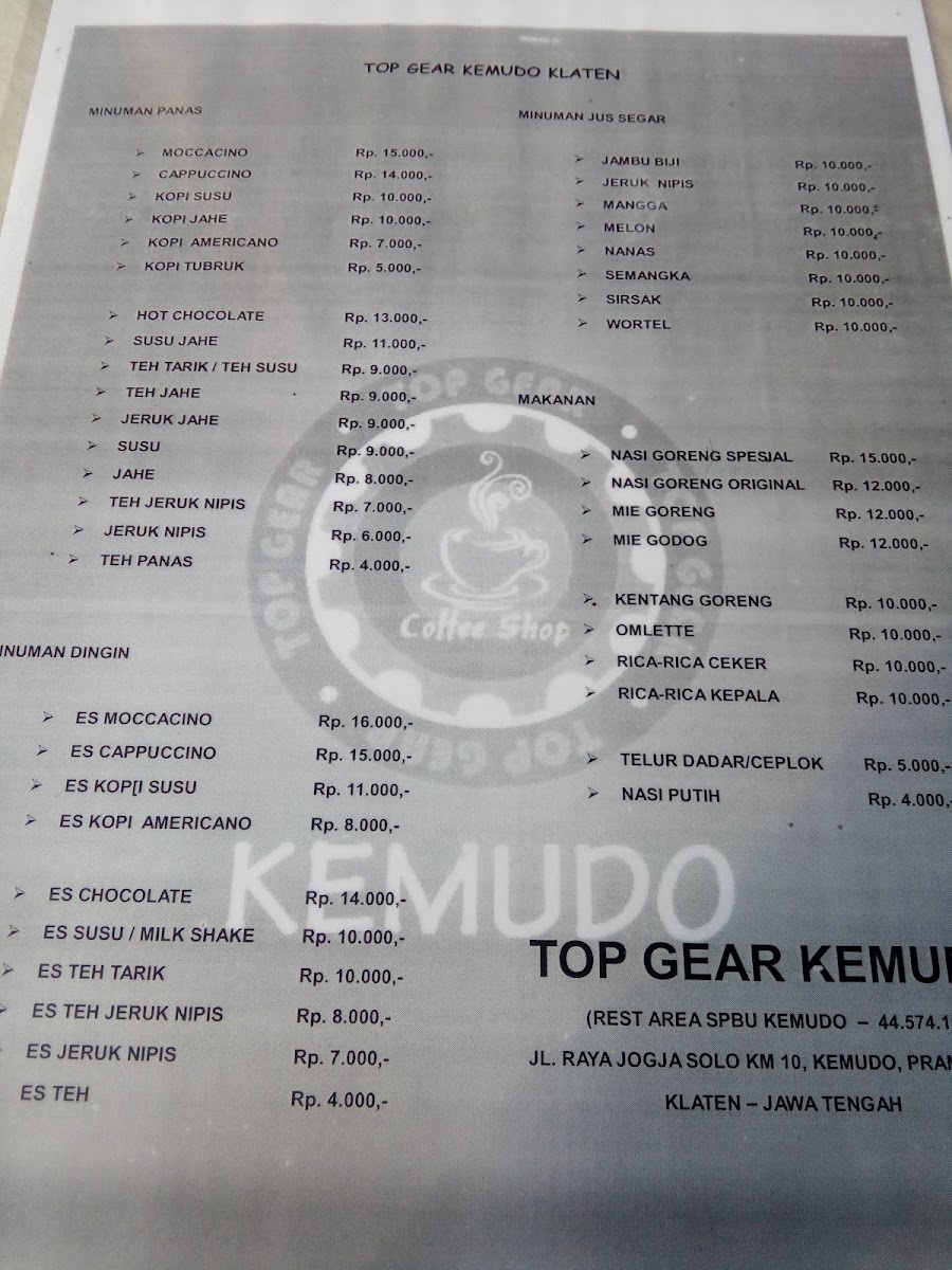 Welcome to Top Gear Coffee Shop, a delightful café perfectly positioned at the SPBU 44.57416 on Jl. Raya Solo - Yogyakarta in Tegalbarong, Kemudo, Kec. Prambanan, Kabupaten Klaten, Jawa Tengah. This cozy spot is not just a coffee shop; it's a haven for coffee lovers and those looking for a place to unwind with friends.
